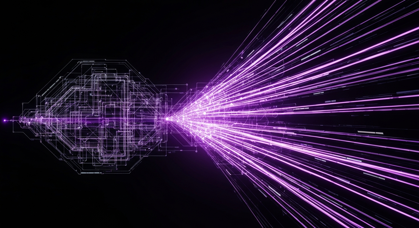 A dark-themed, sleek digital illustration for a blog featured image. A glowing abstract content icon radiates vibrant electric blue and magenta light trails and expanding network lines across a deep blue and purple gradient background, symbolizing content promotion and maximizing reach. The text 'Content Promotion Strategy: Maximize Reach' is centrally displayed with a subtle glow. A subtle website logo is in the bottom-left corner. The image uses cinematic lighting and a modern, high-tech aesthetic.