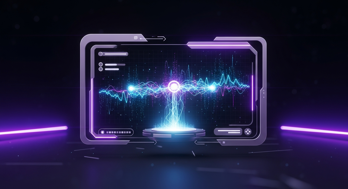 A minimalist, dark-themed digital illustration of a glowing holographic marketing dashboard with abstract charts and graphs, representing data-driven decisions. The image features electric blue and purple neon lights against a deep gradient background. Text overlay reads 'Marketing Dashboard Best Practices'. A subtle 'TechInsight Pro' logo is in the top-left corner.